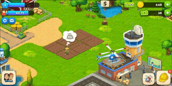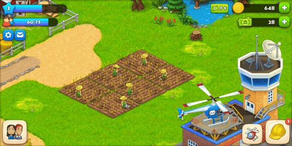 这款游戏操作简单,在游戏开始时,会有动画操作演示,玩家在游戏开始时可以随着动画操作进行种植庄稼,建造房屋建筑,农副产品生产等,还可以用直升机将产品运往居民的住处,完成订单。