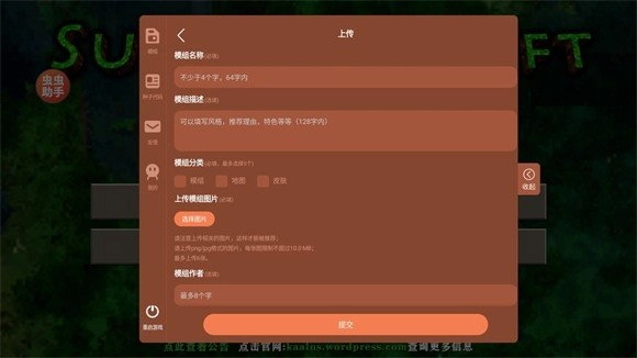 6、如果想要上传自己的模组可以点击右上角的上传按钮,然后把名称描述等内容填写完毕后就能上传给其他玩家游玩了。