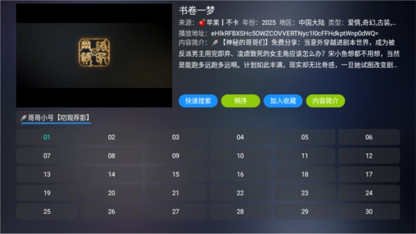2、接着任意播放一部喜欢的剧集内容,这里小编以“书卷一梦”为例。