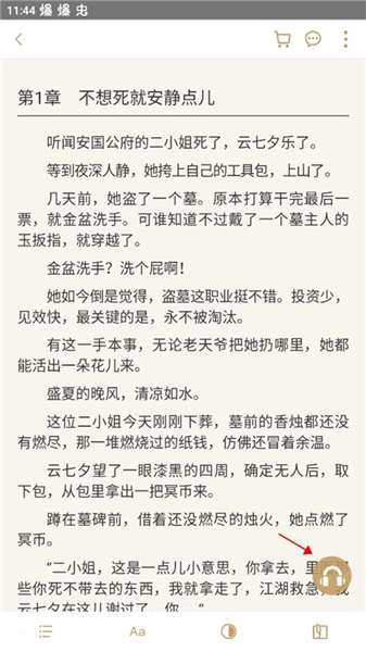 点击进入作品章节,点击屏幕之后通过最右侧的“设置”切换白天或夜间模式。