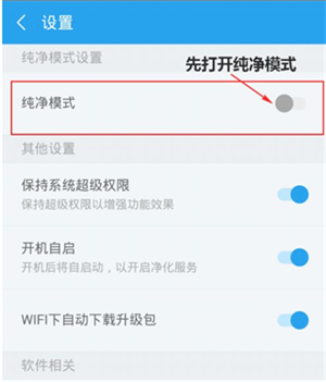 2、在设置中打开纯净模式。