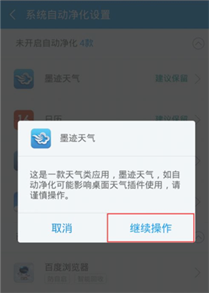 随后,在应用净化设置中,根据自己的需要开启以下两项(一般建议两项全选):