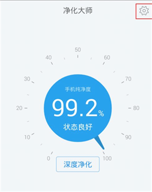 1、打开净化大师后,点击右上角的设置图标。