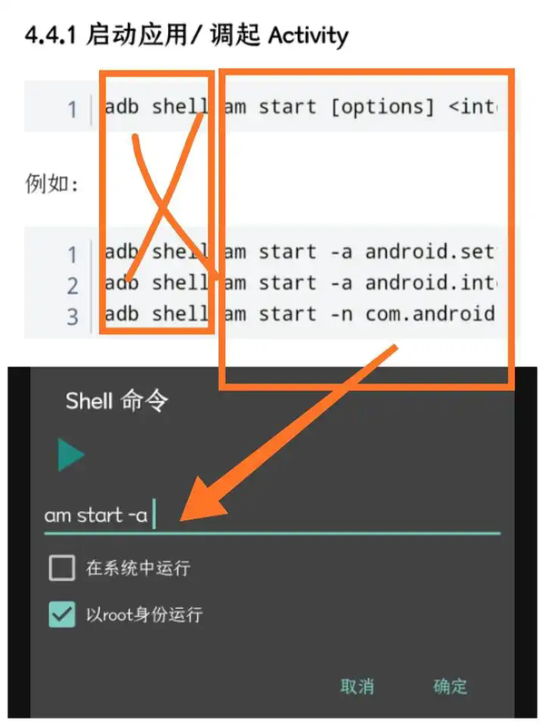 请注意,在手机上执行上述链接中的adb shell命令时,需去掉命令前面的“adb shell”,并勾选“以root权限执行”。