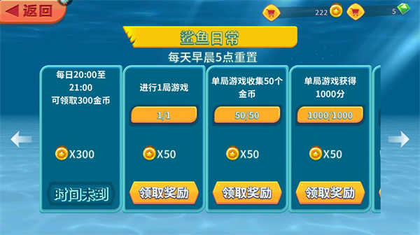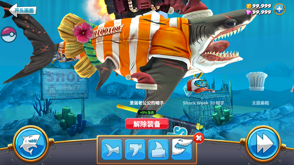 9、在这儿,玩家能够领取到丰厚奖励,不仅能够为鲨鱼装配装备,还能解锁其他模式。不仅如此,游戏里还有诸多玩法,等待着玩家们亲自去体验。