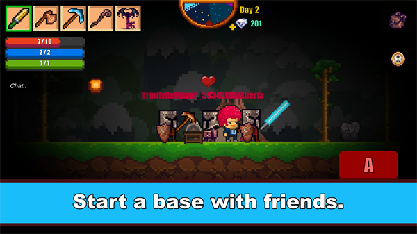 2、收集木头、各种矿石来打造各种东西,与其它的玩家一同联机玩,一同合作生存。