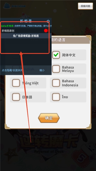 1、进入游戏的时间我们需要选择语言,这里选择简体中文就行