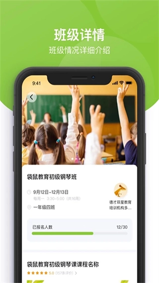 课后三点半,是一款专门针对公立学校小学生打造的课后素质教育选课平台。其目的在于协助家长有效利用孩子放学后的时间,推动孩子综合素质的发展。该平台整合了线下社团课、兴趣班以及安心托管等各类丰富资源,所涉领域包含艺术、体育、科技等。通过与优质品牌、教育机构以及专业师资展开合作,来确保课程质量。与此同时,家长端具备选课报名、查看安排以及家校互动等功能,为家校协同育人提供助力。