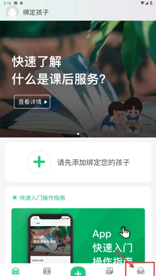 1、打开课后服务类应用,点击底部我的选项,进入个人中心页面。