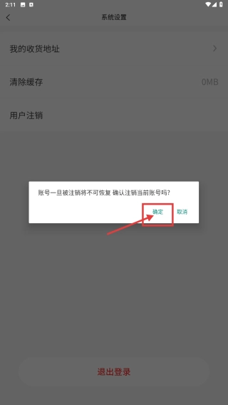 4、在注销确认弹窗中,点击确定按钮,完成账号注销操作。