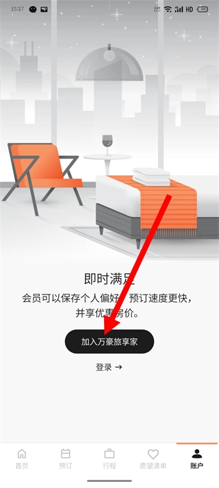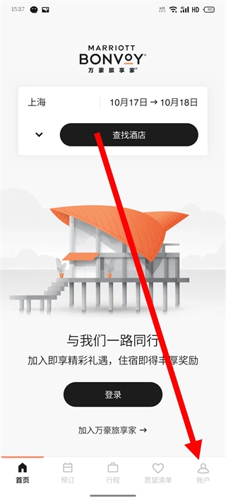 2、进入账户页面,点击加入万豪旅享家按钮。