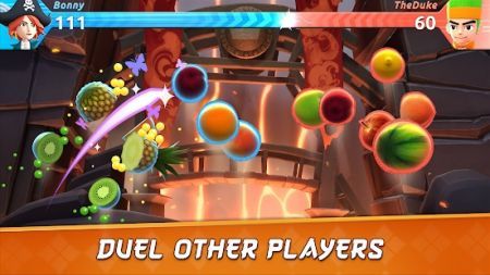 挑战玩法(核心玩法):挑战水果忍者大师排行榜上的玩家进行游戏竞技。