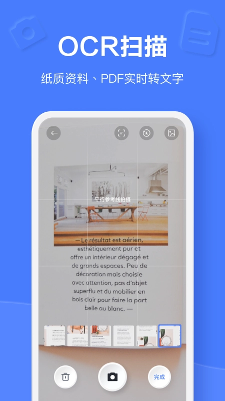 2. 智能扫描优化:白板照片自动纠偏去噪,证件扫描多端同步备份,旅行票据一键归档。