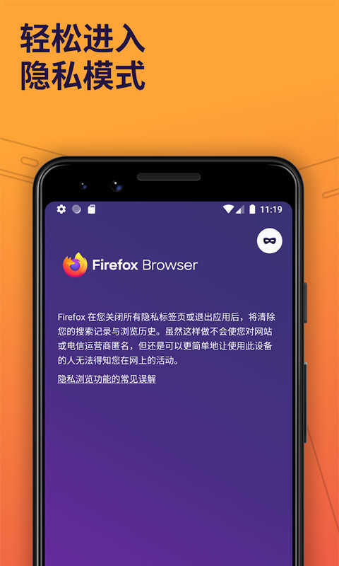 快来安装火狐浏览器手机安卓版!这是一款能保障安全上网的浏览器,绿色加载,没有广告与弹窗打扰。它支持标签浏览,配备智能打造的工具栏,还提供无图阅读模式,有需要的朋友别错过!