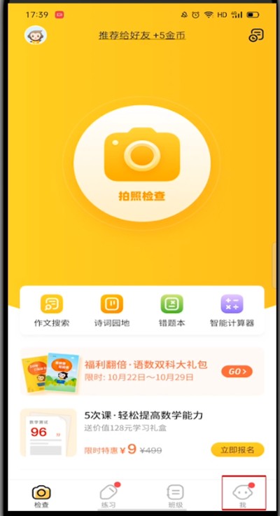 当你成功安装小猿口算后,只需对着习题册轻点「拍照检查」按钮,小猿口算App便会迅速自动识别练习册里的算术题,并即刻给出答案,让对错情况清晰呈现。