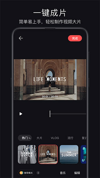 丰富的模板视频热门视频模板、VLOG、航拍、旅行、卡点视频模板、萌娃、生活、艺术、照片模板等不同风格视频模板,总有一款适合你。