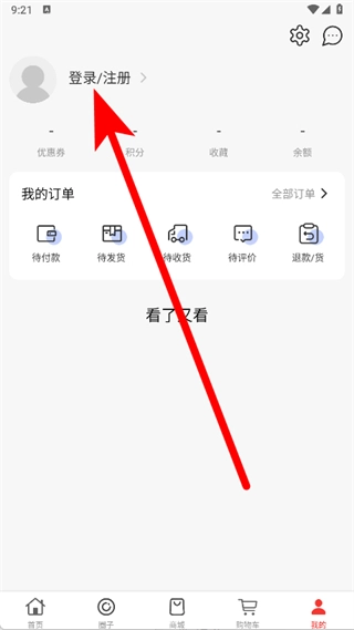 2. 在“我的”页面,点击登录注册区域,进入登录页面。