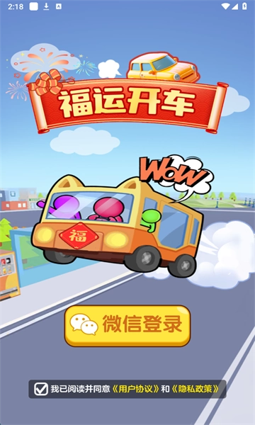 1、打开福运开车红包版,点击同意