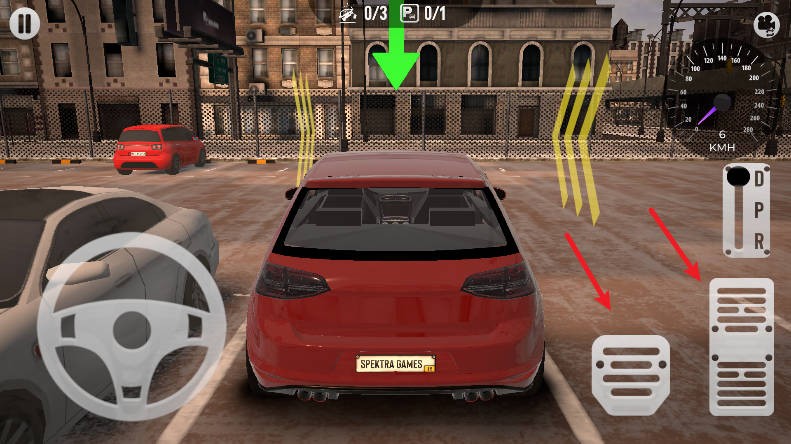 2、加速/刹车:加速与刹车的按钮分别位于屏幕下方。小心控制加速,避免过快冲过目标停车位。刹车操作尤其重要,需要在接近停车位时及时减速,避免碰撞。