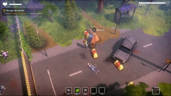 1、你可以向西走,找到一个上锁的门和2个小怪,你不能通过大门,但你可以检查附近的蓝色汽车和橱柜找到一些废金属。