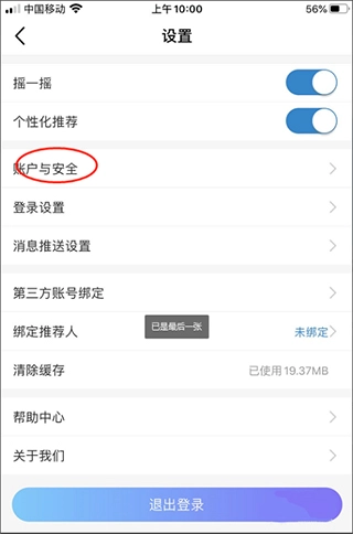 4、然后设置面板里点一下账户与安全进入到设置选项。如下图所示。
