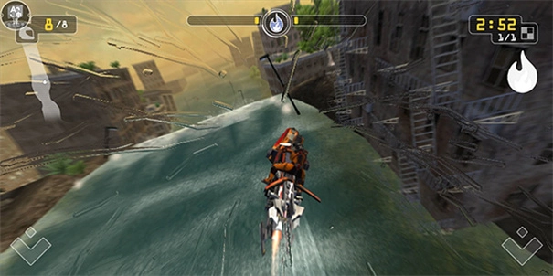 在城市河道、工厂废墟等水上赛道中非法竞技,体验构思巧妙的秘密捷径,极高破坏率的动态障碍,丰富的竞技系统;