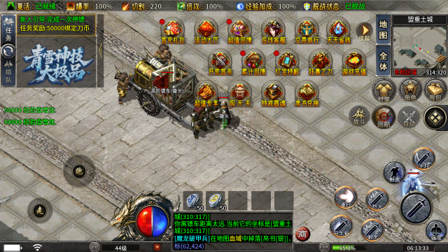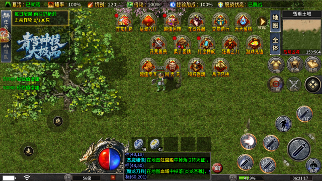 2、装备无忧,全自动拾取,掉落即自动穿戴+鉴定,属性好坏全凭人品!