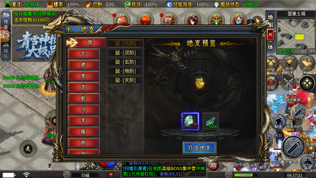 2、十二地支:消耗刀币和法宝碎片即可打造十二地支装备,每一个生肖都有着凡、灵、玄、地、天五种等级。