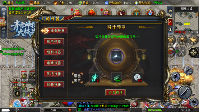 3、六格神器:消耗真曜石、刀币和银钱即可打造,共有减伤、格挡、切割、麻痹、复活、恢复六种。