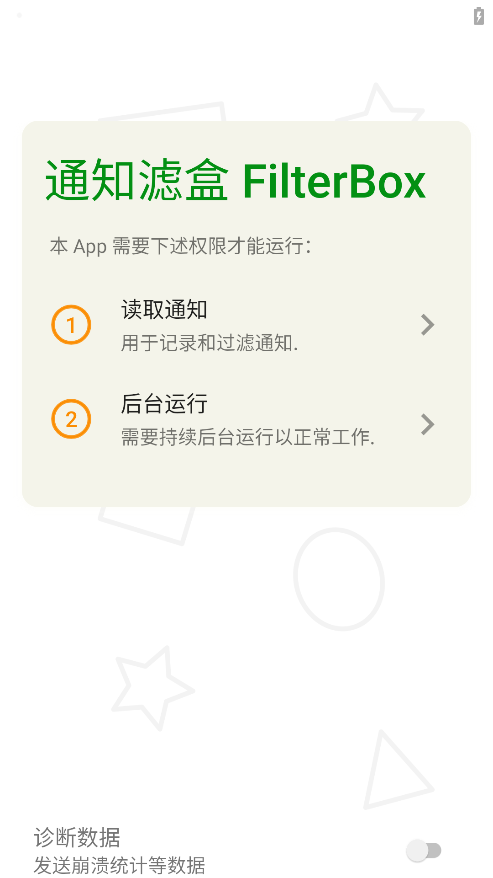 通知滤盒是一款专为安卓手机设计的全功能通知管理工具,旨在帮助用户高效管理手机通知,减少无关推送干扰,提升使用专注度与效率。软件以简约UI设计和极低内存占用为核心优势,支持通知历史记录、自定义过滤规则、智能分析统计等功能,满足用户对通知管理的多样化需求,能够自动保存30天内所有通知内容,包括已取消和正显示的通知,用户可随时根据App名、包名或关键字自由搜索查找,支持按软件黑白名单、文本关键字匹配、正则表达式等多种方式添加过滤规则,用户可精准屏蔽广告、营销短信等无关通知,过滤规则可选择对通知静音或直接消除,满足不同场景需求。