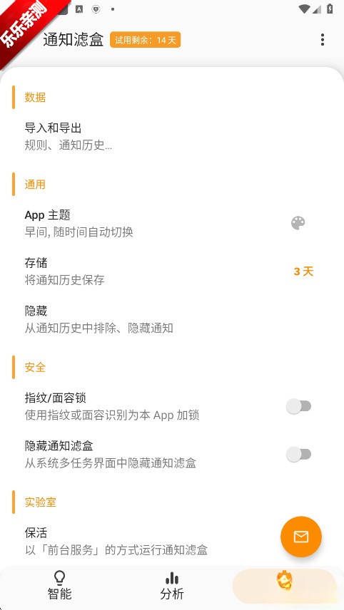 通知滤盒,这是一款专门为安卓用户精心打造的智能通知管理神器。它具备强大的功能,不仅可以自动留存30天内的全部通知历史,使你在任何时候都能够找回不小心误删的重要信息;而且还支持借助关键词或者AI机器学习,精准地过滤掉广告等具有干扰性的内容。再搭配上晨昏主题切换、通知统计分析以及规则导出功能,通知滤盒能够助力你彻底告别通知栏的混乱局面。