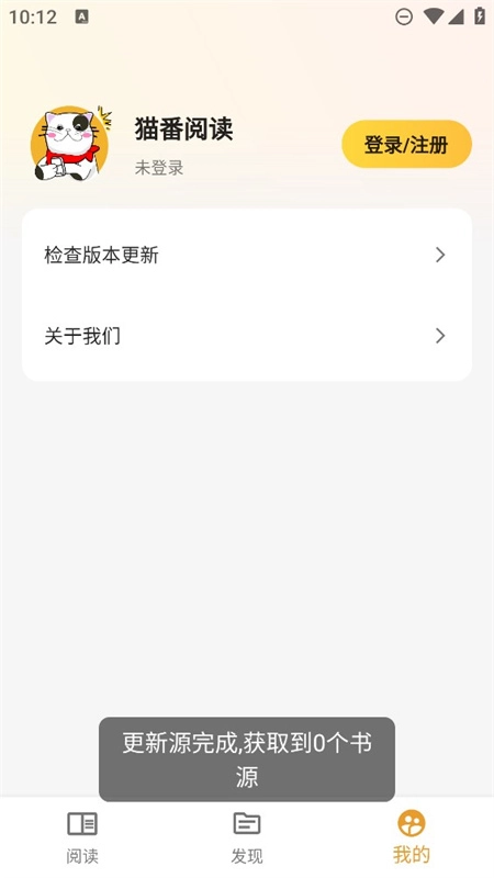 1、第一次打开猫番阅读会是空白的,需要先获取书源后才可以使用。