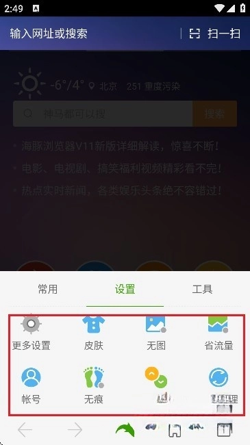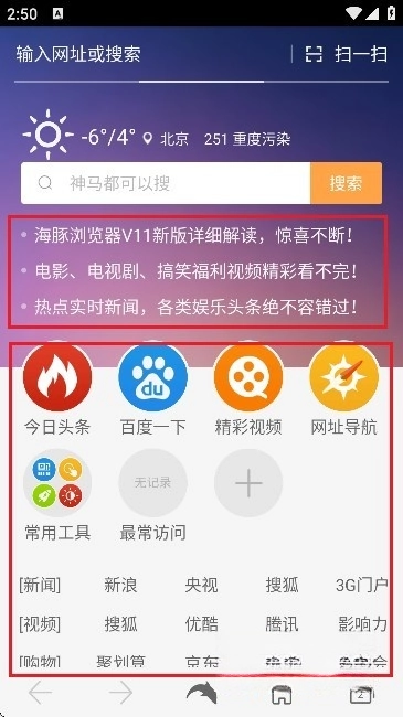1、并安装海豚浏览器后,打开应用,界面如图所示。