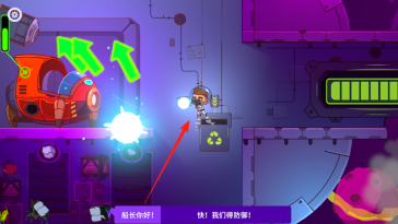 3、移动角色,利用武器攻击来袭敌人,按箭头提示路线,灵活转移防御阵地。