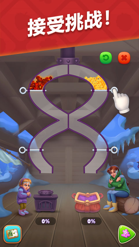 这是一关极具创意的设计,水流与大量石头箱子的组合为柠檬水的收集增加了不少难度。