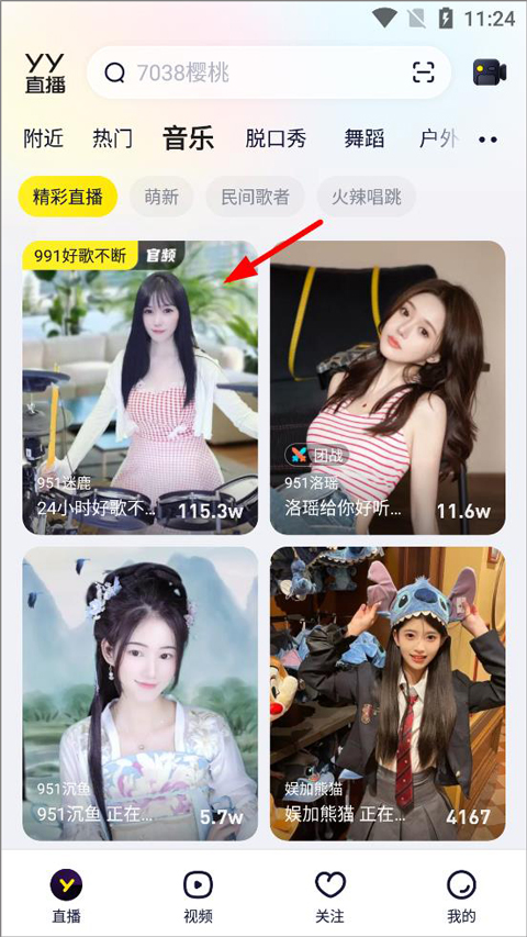 1. 开启yy语音并完成登录,随后进入直播首页,在首页浏览诸如音乐、脱口秀、舞蹈、游戏、户外等各类热门频道,从中挑选你感兴趣的主题。