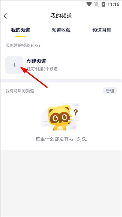 2、进入“我的频道”页面,点击“创建频道”,以便好友加入进行语音互动;