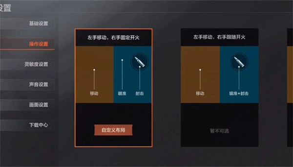 2、点击第一个“自定义布局”,进入自定义布局界面,将原本位于屏幕右上方的设置按钮拖拽到屏幕的中间位置,根据自身的需求调准设置按钮的位置和大小遗迹透明度。