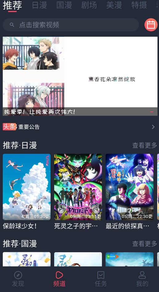3、特别设立了国漫专区,大力支持本土动漫创作,为国产动漫提供了展示和交流的平台。
