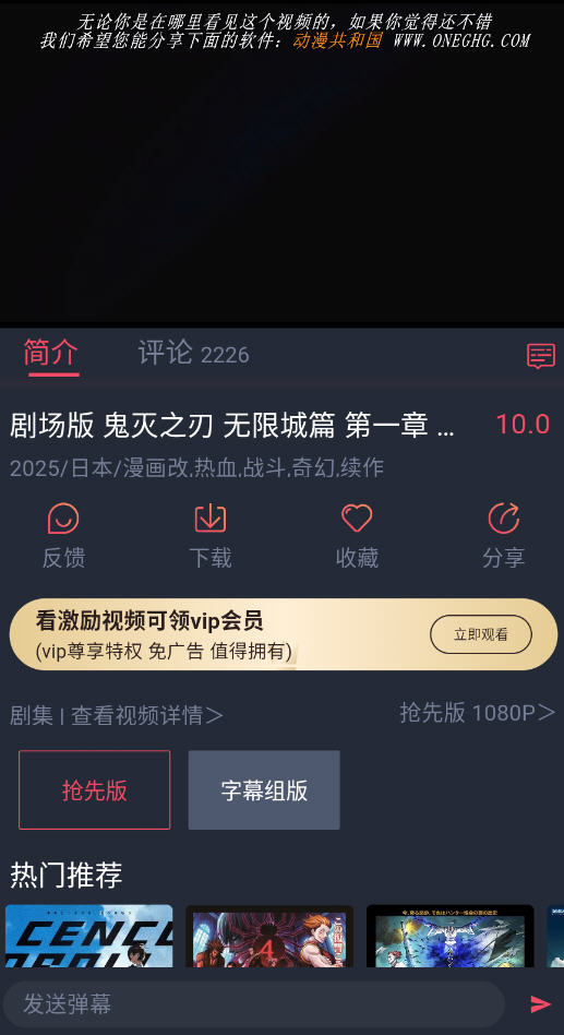 1、打开Oneghg动漫,选择你喜爱的动漫,并进入其播放页面。