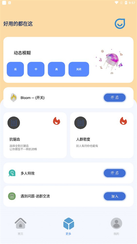 4、接下来,你可以来到更多页面,将页面中的特效和动态模糊功能都开启;这些功能可以提升游戏的画面效果,让你享受更加逼真的游戏世界;