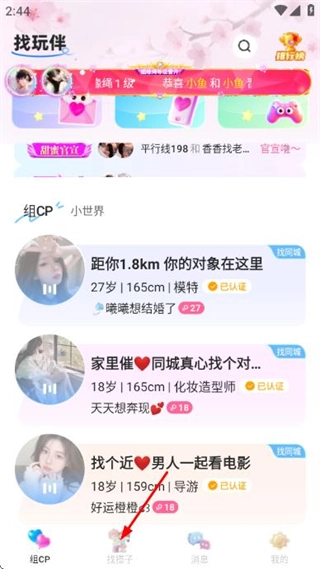 1. 在找玩伴界面,点击底部的“找搭子”按钮,即可进入找搭子页面。