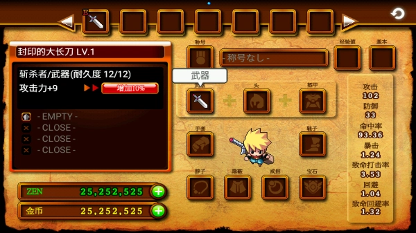 2、装备(EQUIP):直观展示穿戴装备及其属性,强化越高越强。