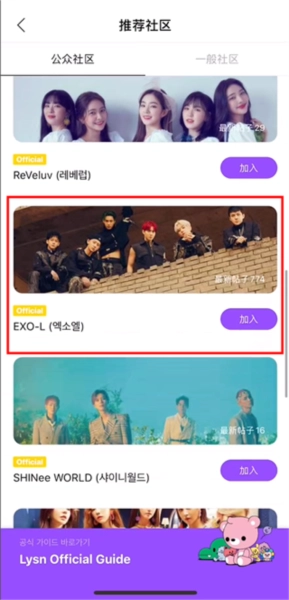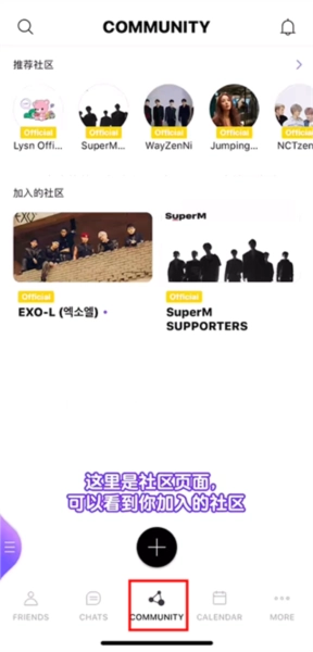 4、进入“COMMUNITY”页面,查看已订阅的艺人组合及其相关内容。