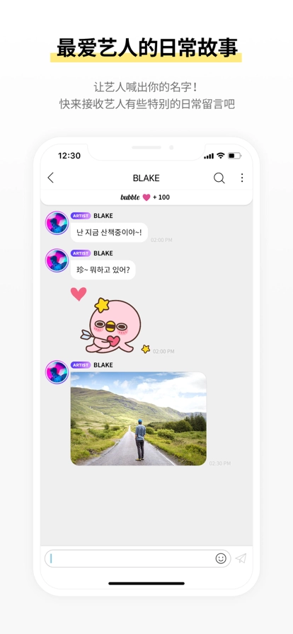 在Lysn的Bubble专区购买心仪艺人的服务后,点击艺人的头像即可开始聊天,但请注意,聊天内容属于私人范畴,不得外传。