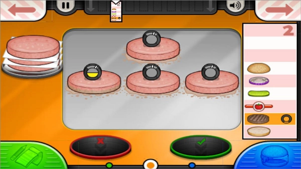 2、前往烧烤区域煎制肉饼,留意指针的变化情况,保证肉饼能达到顾客要求的熟度。
