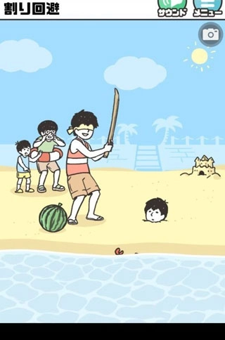 操作简单明了,点击螃蟹并将其拖至持棍男孩的右脚位置,完成任务!
