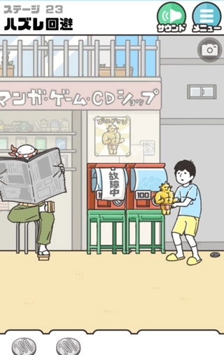 第二十三关点击贩卖机三次,投币成功后尽快操作,注意避开看报大爷视线完成任务