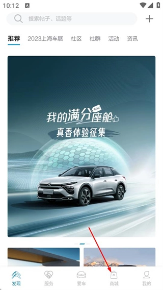 1、在东风雪铁龙首页,点击底部的商城选项,进入商城页面。