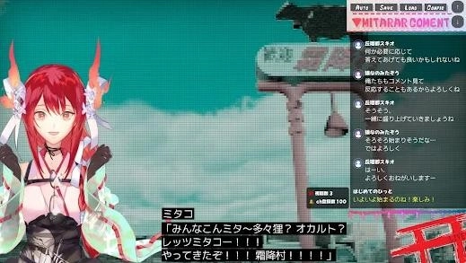2、游戏画面中会出现VTuber“Tatatanuki Mitako”的形象,她所在的直播村庄,以及实时更新的视频评论区。